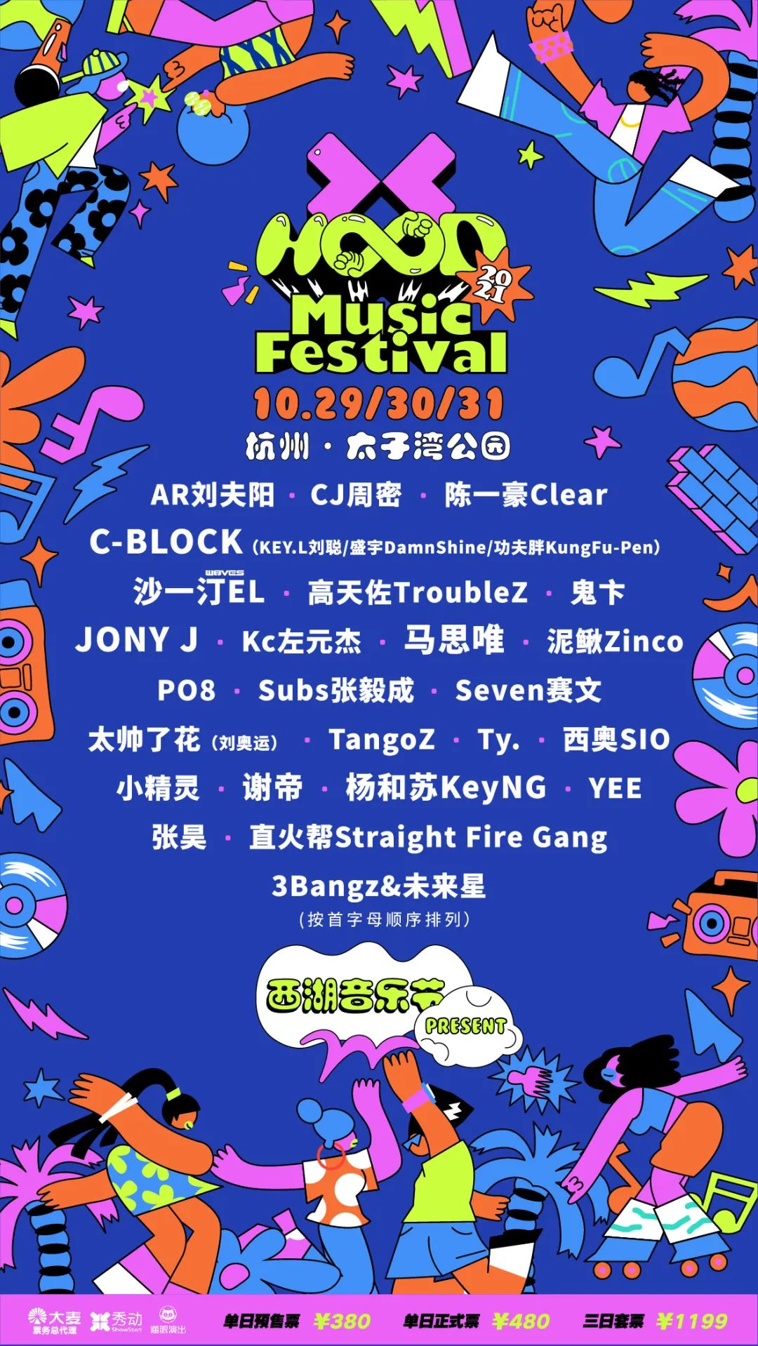10月29日-10月31日,2021 X-Hood音乐节,三天全嘻哈盛宴,JONY J、C-BLOCK、马思唯、谢帝、杨和苏KeyNG、Ty. 、沙一汀EL、鬼卞、TangoZ等25组艺人,将用说唱Show出他们的态度。