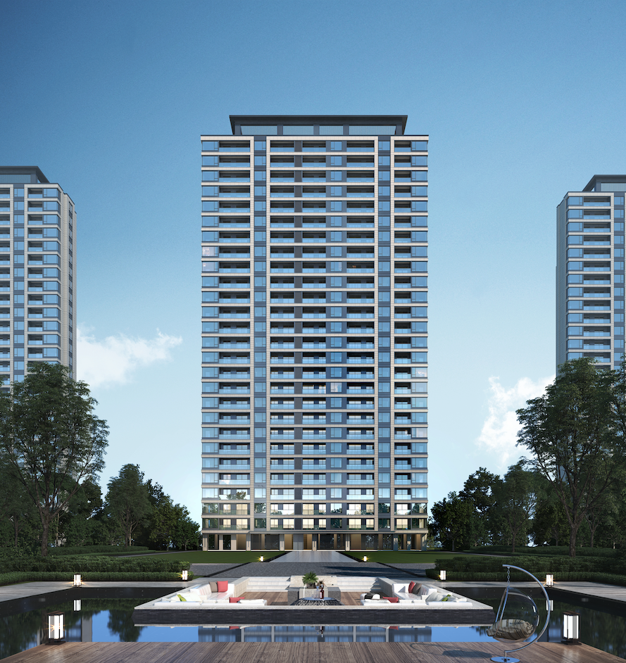 极简主义的镜面水景,倒映出“杭派精工”引以为傲的超大窗墙比建筑。