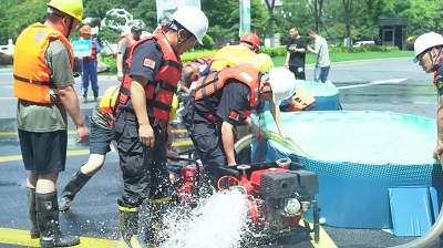 现场实际演练了人员紧急集结、队容队貌展示、防汛沙袋叠放、抽水泵使用等多个科目,充分展现了为即将到来的亚运盛会保驾护航的实力与决心。